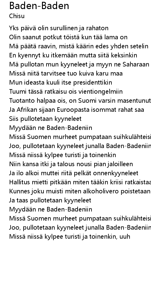 | Joo, pullotetaan kyyneleet junalla Baden-Badeniin | |