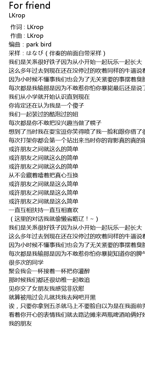 | [01:42.698] | 我们是关系很好铁子因为从小开始一起玩乐一起长大 |