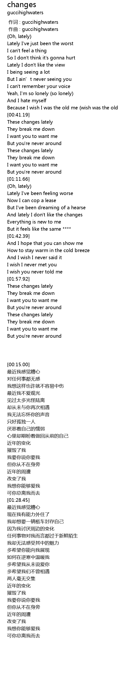 | [01:37.22] | And lately I don't like the changes |