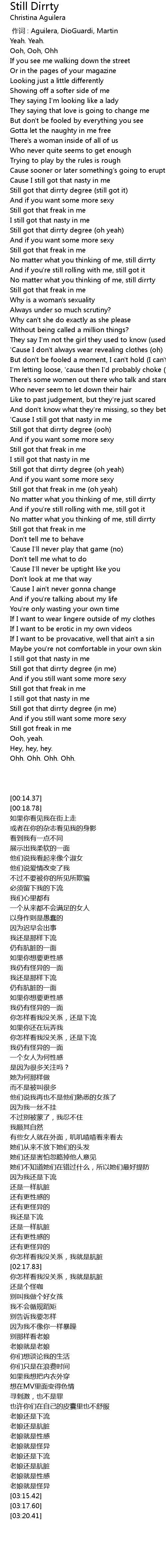 | [02:20.41] | No matter what you thinking of me, still dirrty |