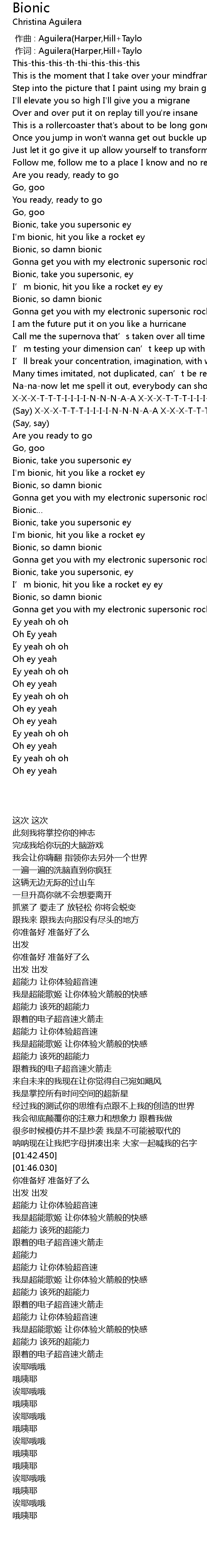 | [01:08.330] | Bionic, take you supersonic, ey |