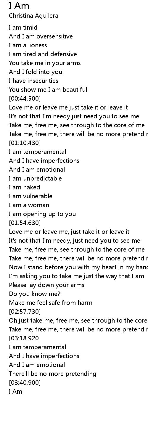 | [02:29.920] | I' m asking you to take me just the way that I am |