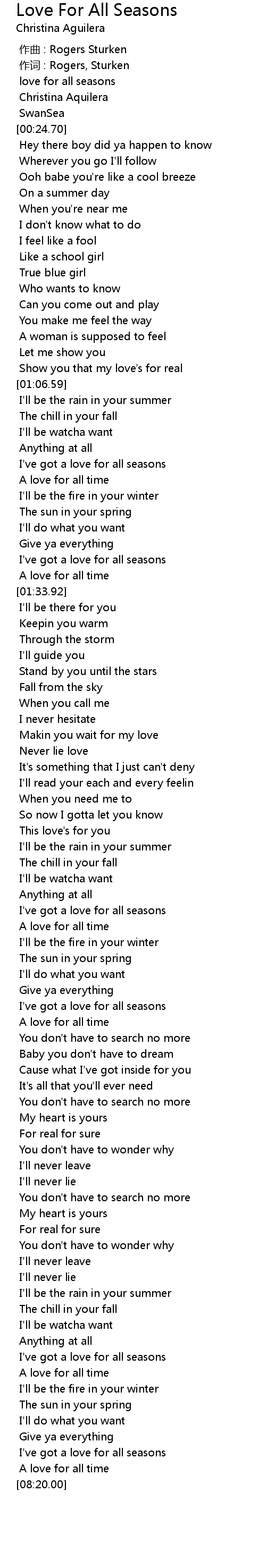 | [03:39.75] | I've got a love for all seasons |