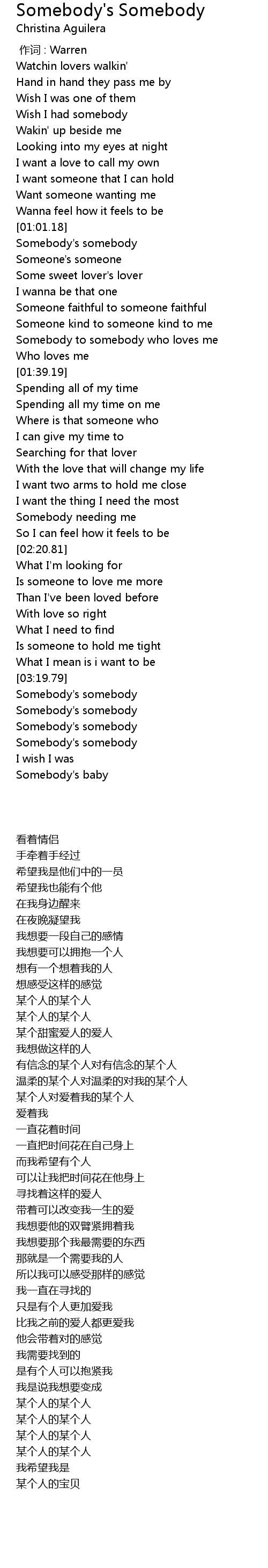 | [03:38.79] | Somebody' s somebody |