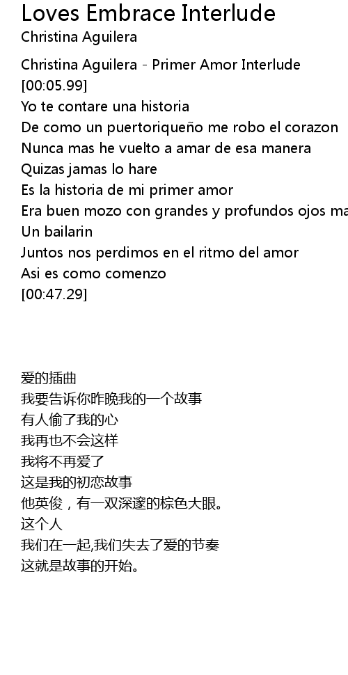 | [00:00.00] | Christina Aguilera - Primer Amor Interlude |