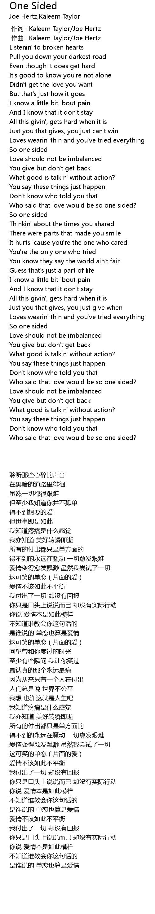 | [02:43.788] | Who said that love would be so one sided? |