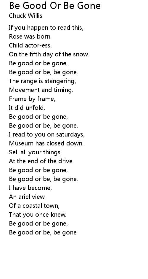 Be good or be gone, |