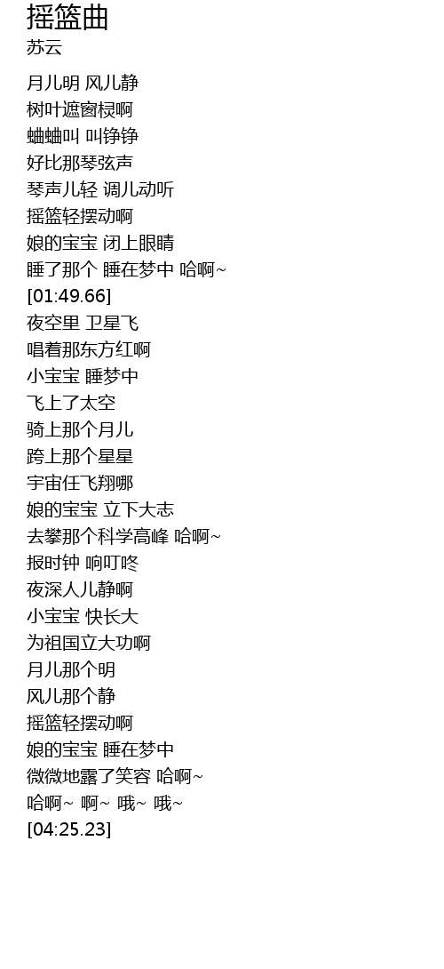 | [03:50.38] | 娘的宝宝 睡在梦中 |