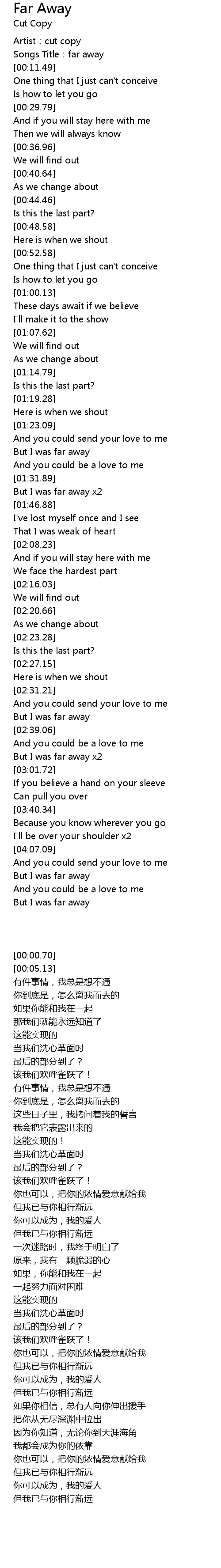 | [01:34.82] | But I was far away x2 |