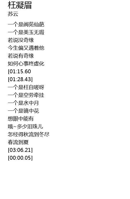 | [01:54.49] | 一个是枉自嗟呀 |