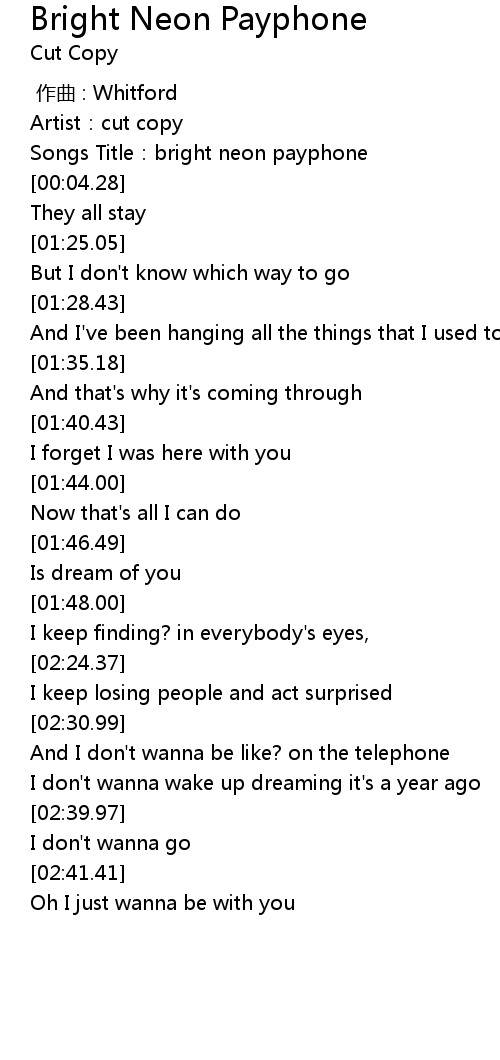 | [02:33.74] | And I don't wanna be like? on the telephone |
