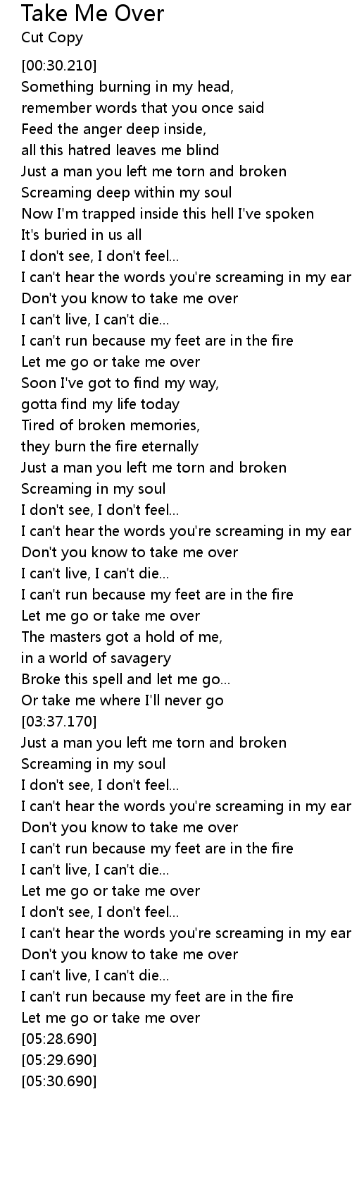 Let me go or take me over |