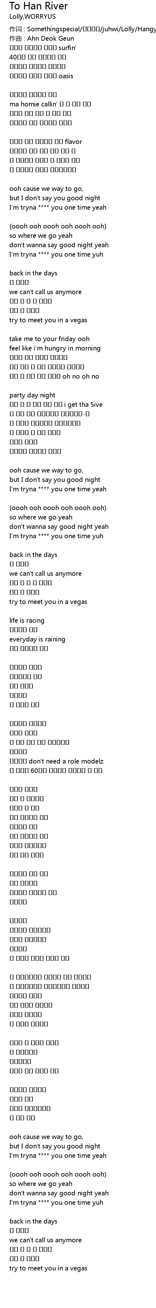 | 作词 : Somethingspecial/미야기현/juhwi/Lolly/Hangyul | |