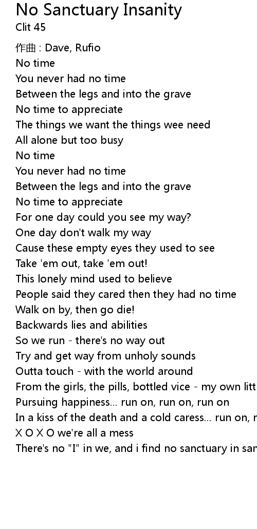 | Song | No Sanctuary Insanity |