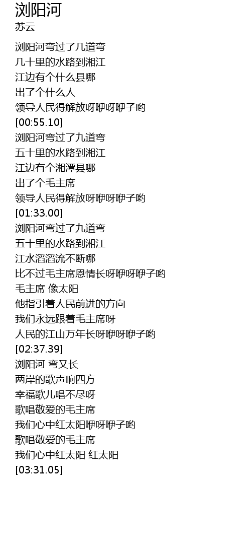 | [01:05.94] | 浏阳河弯过了九道弯 |