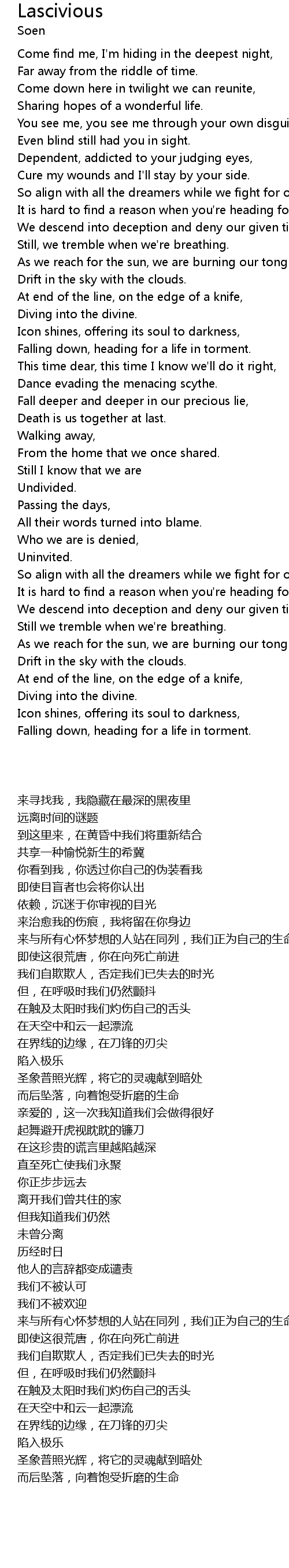 | [00:06.343] | Come find me, I'm hiding in the deepest night, |