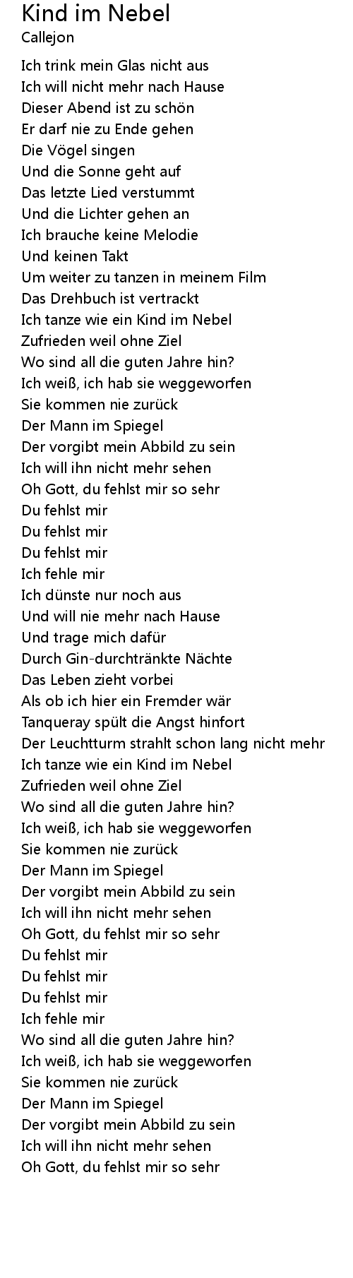 | Song | Kind im Nebel |