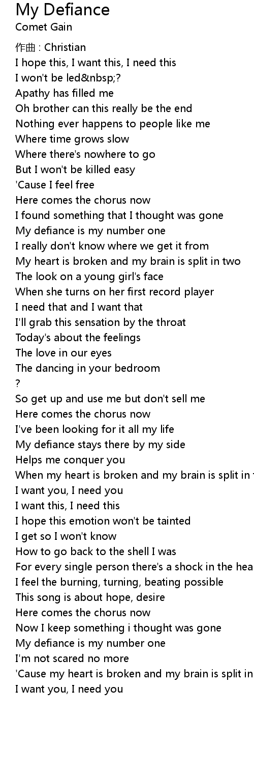 | My defiance stays there by my side | |