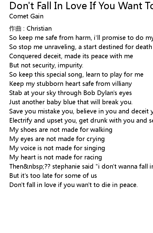 | Song | Don't Fall In Love If You Want To Die In Peace |