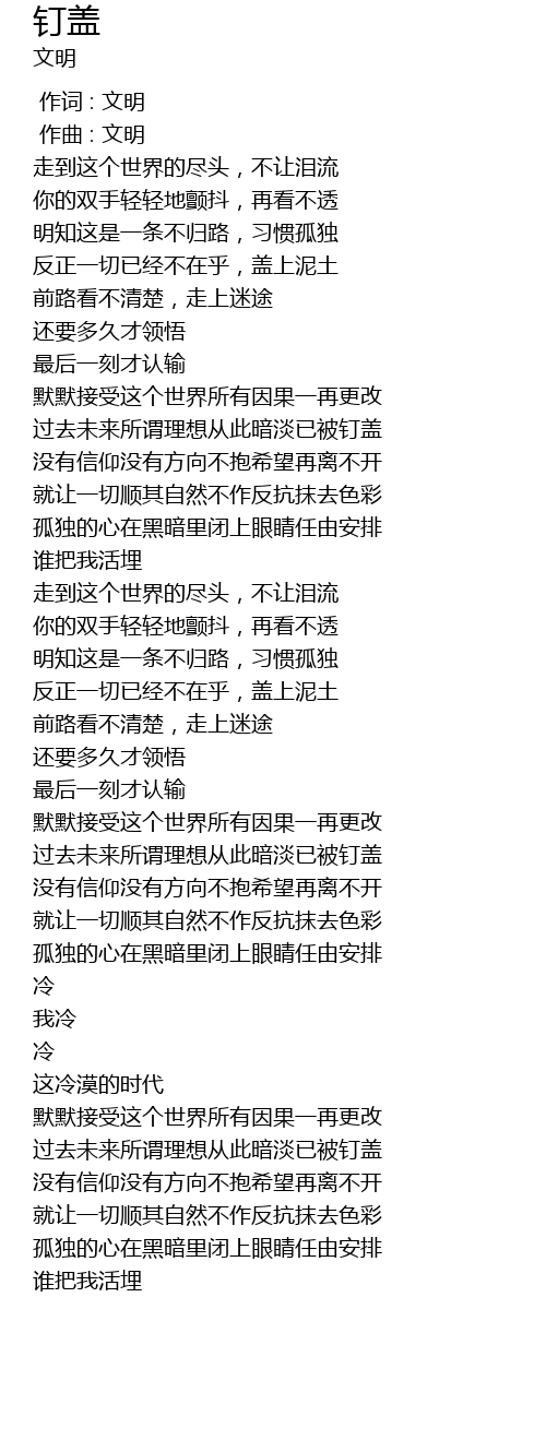 | [00:35.309] | 反正一切已经不在乎,盖上泥土 |
