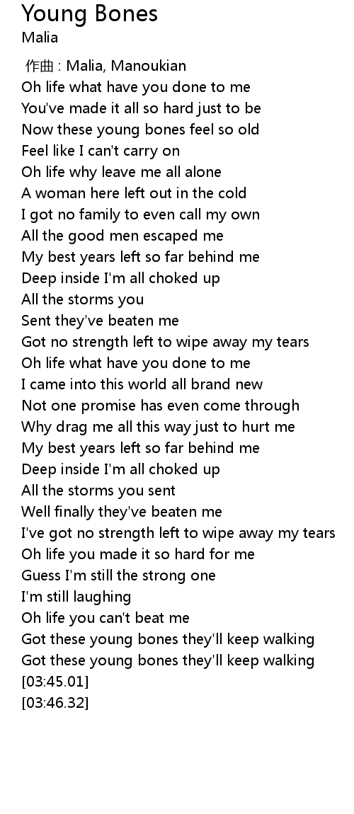| [03:33.27] | Got these young bones they' ll keep walking |