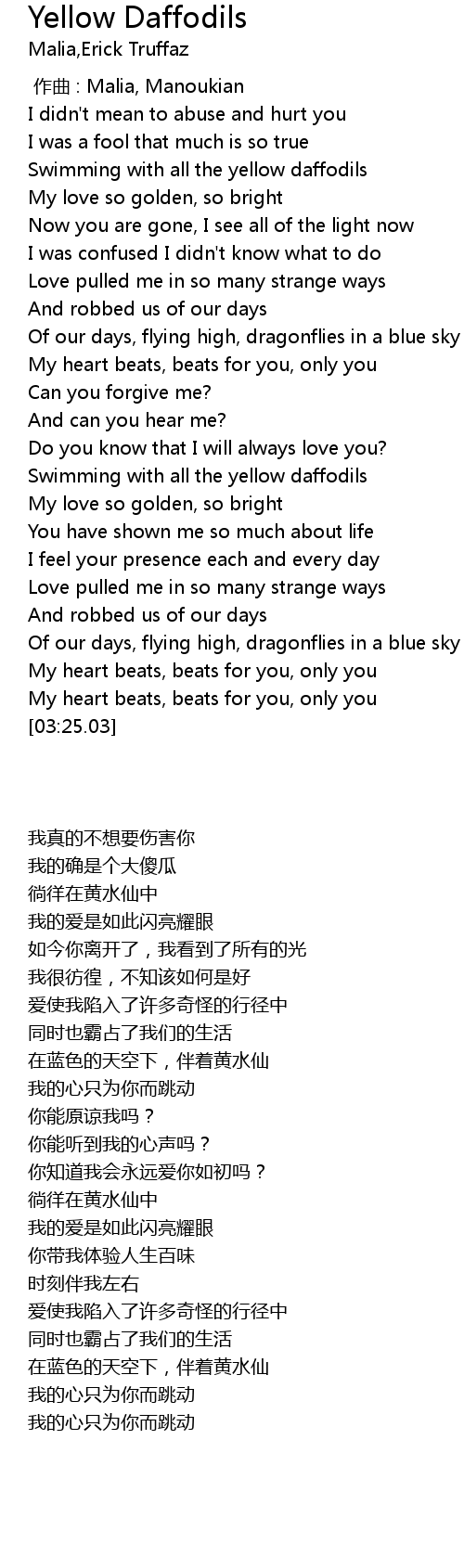 | [01:49.88] | Swimming with all the yellow daffodils |