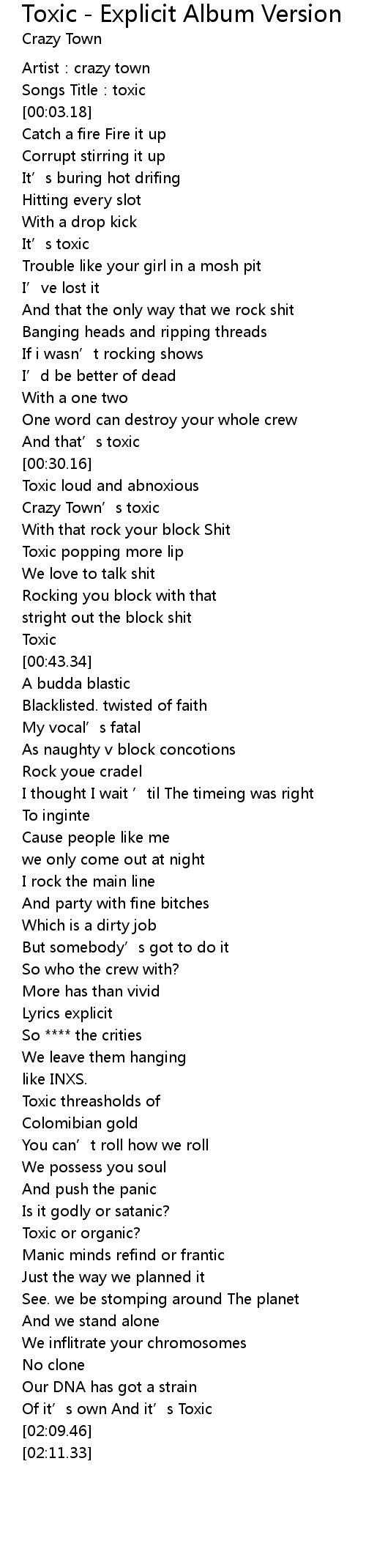 | [02:06.71] | Of it' s own And it' s Toxic |
