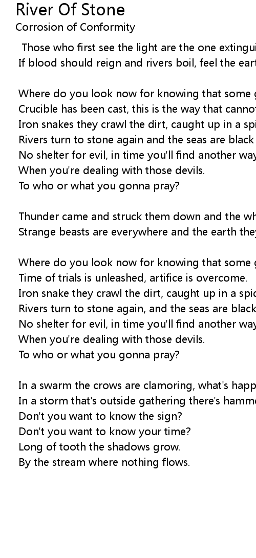Rivers turn to stone again and the seas are black and dead. |
