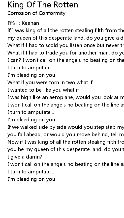 | Now if I was king of all the rotten stealing filth from those forgotten would you be my queen of this desperate land, do you think | |