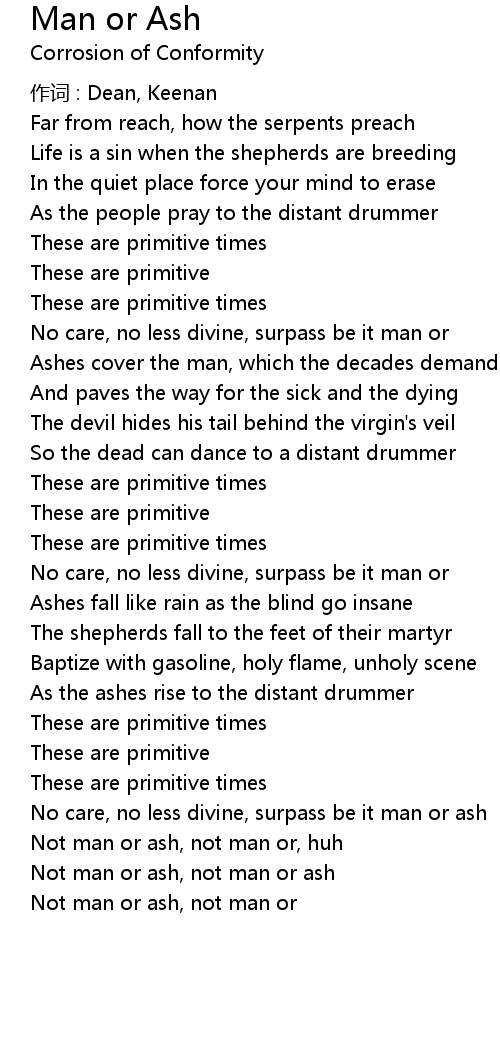 | Not man or ash, not man or |