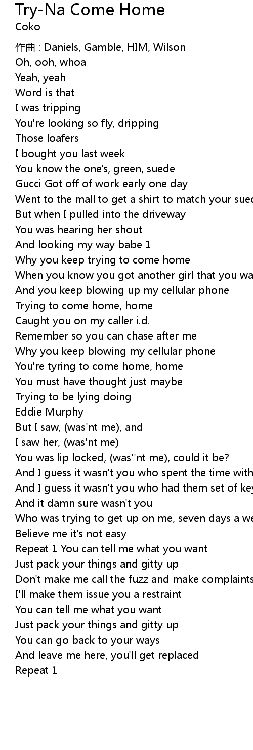 | You' re tyring to come home, home | |