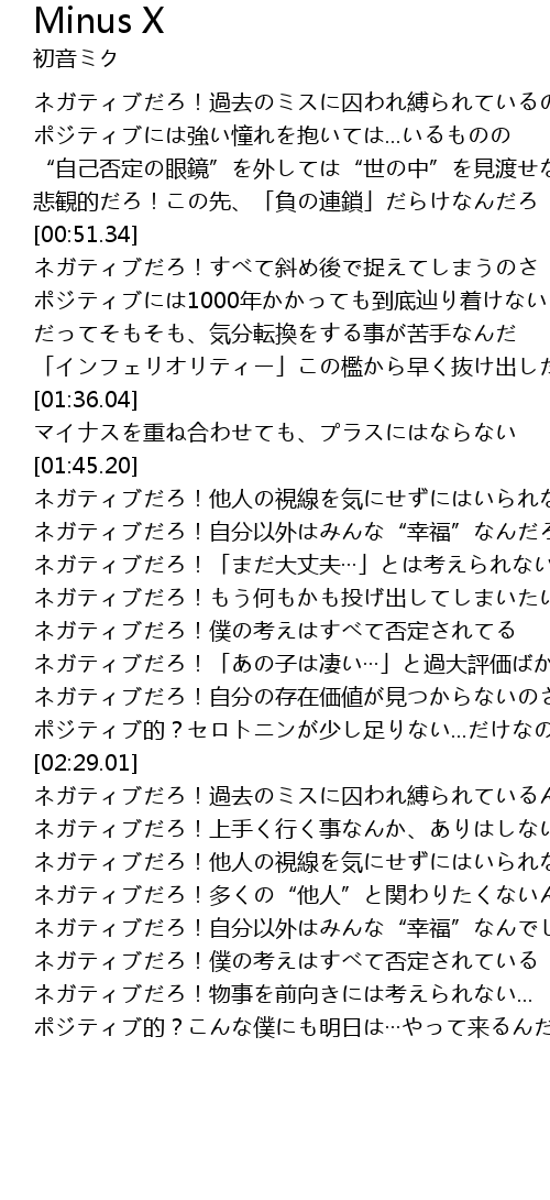 | [02:05.34] | ネガティブだろ!僕の考えはすべて否定されてる |
