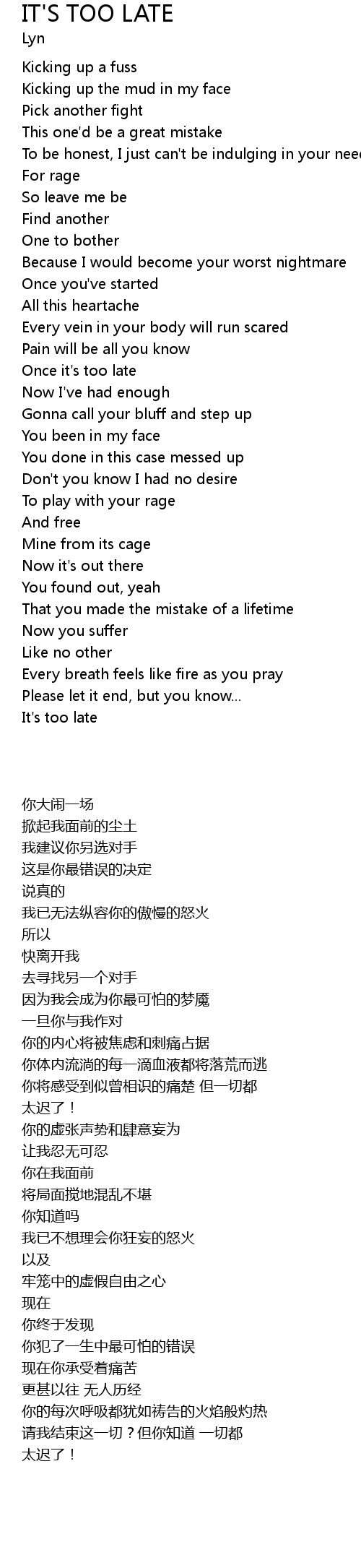 It's too late |