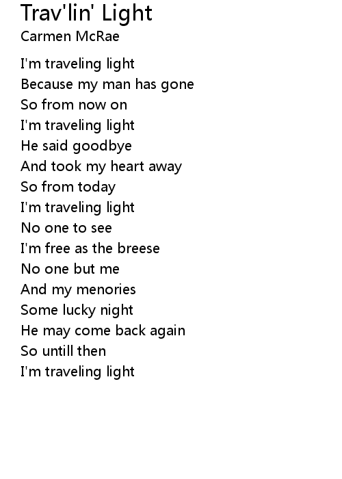 | I'm traveling light | |