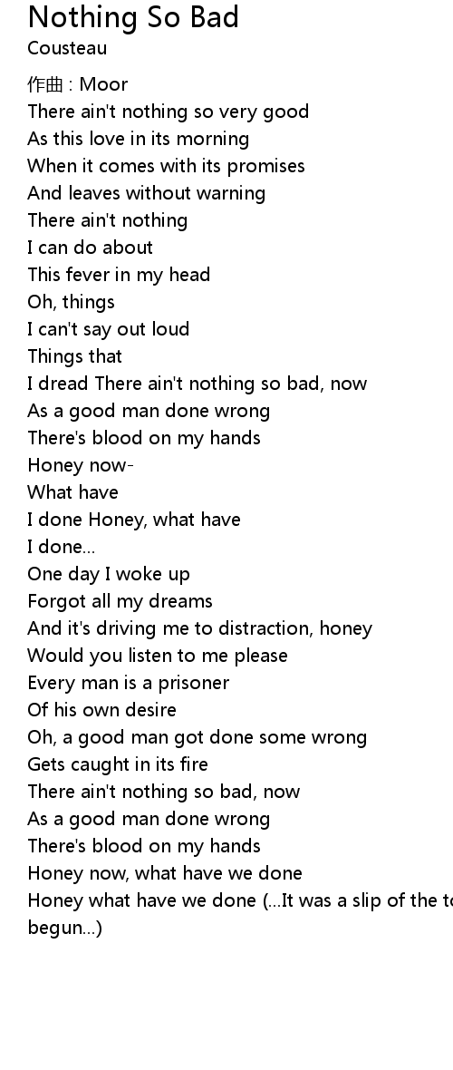 | There ain't nothing so bad, now | |