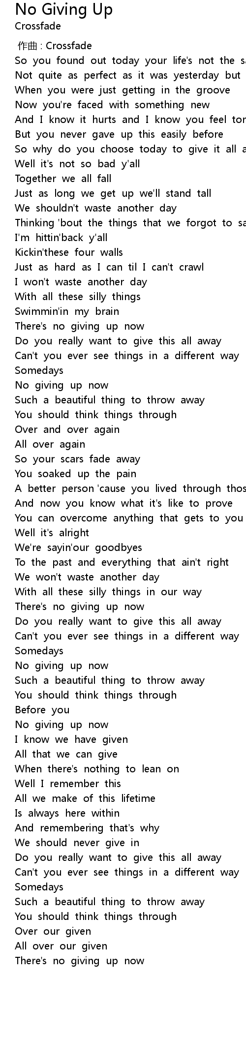 | [00:46.216] | Just as hard as I can til I can' t crawl |