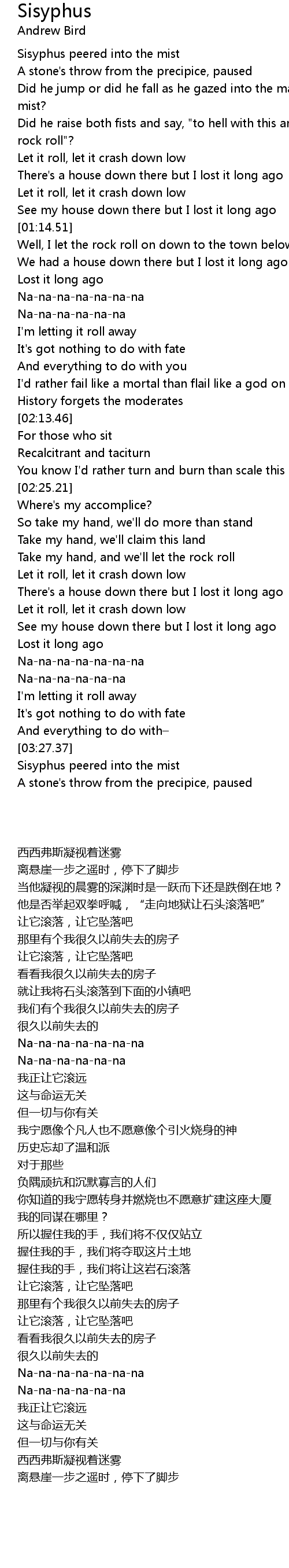 | [00:33.14] | Sisyphus peered into the mist |