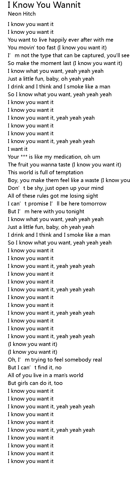 | [00:34.250] | So I know what you want, yeah yeah yeah |