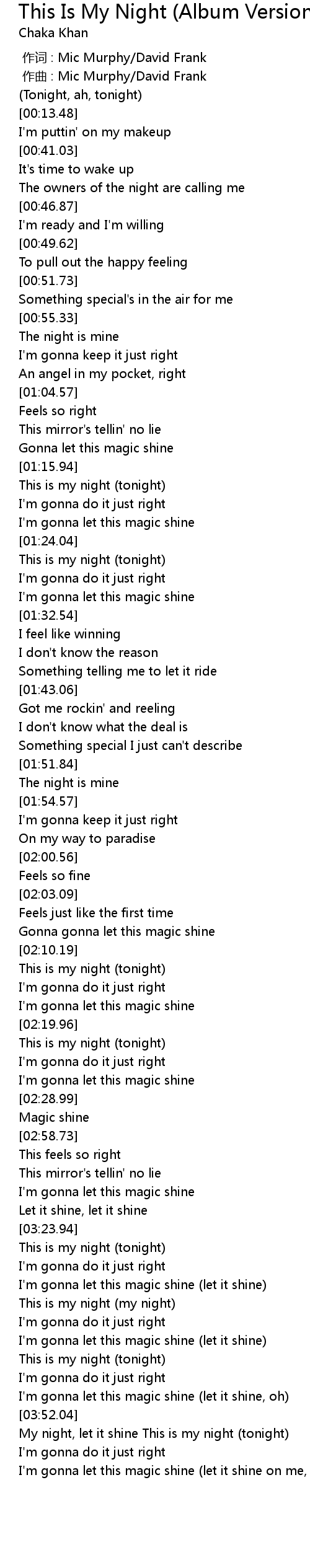 | [04:02.32] | My night, let it shine This is my night (tonight) |