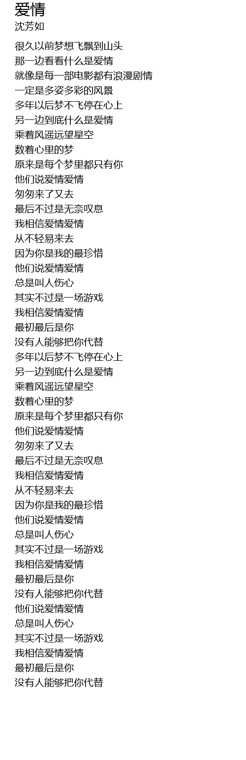 | [02:38.00] | wo xiang xin ai qing ai qing |