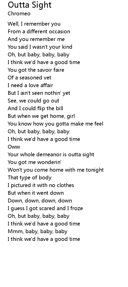 Your whole demeanor is outta sight |