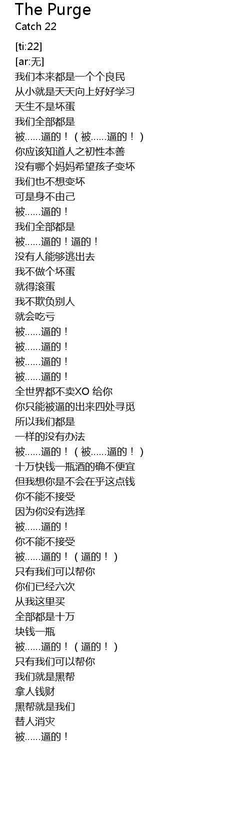 | [01:08.389] | 被……逼的!(被……逼的!) |