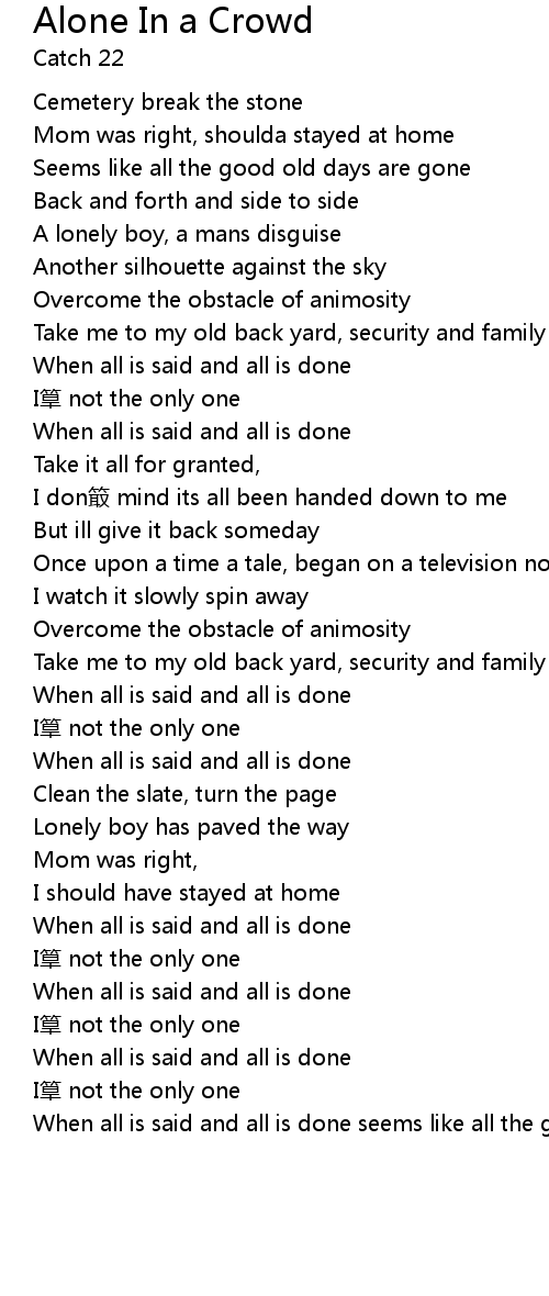 | Song | Alone In a Crowd |