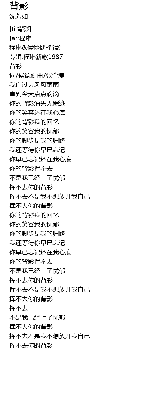 | [00:02.300] | 程琳&侯德健-背影 |