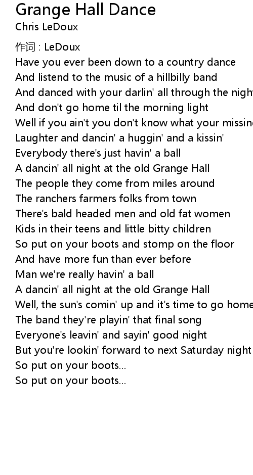 | A dancin' all night at the old Grange Hall | |