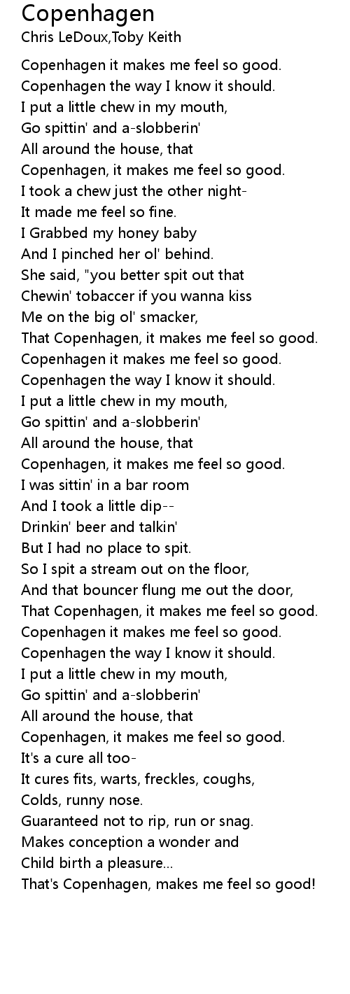 Copenhagen it makes me feel so good. |