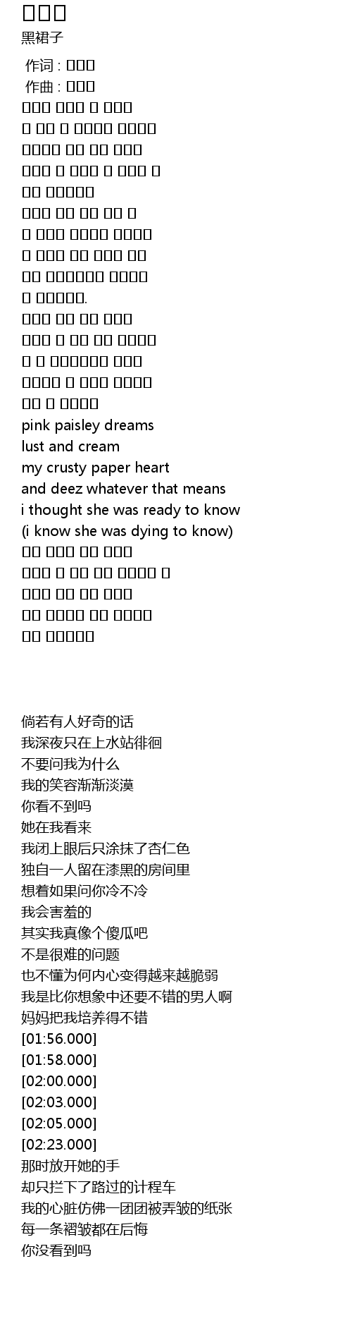 | [01:56.000] | pink paisley dreams |