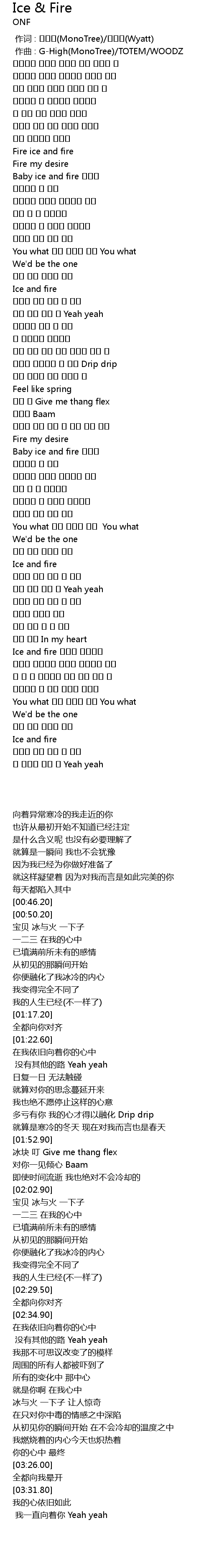 | [00:46.20] | Fire ice and fire |