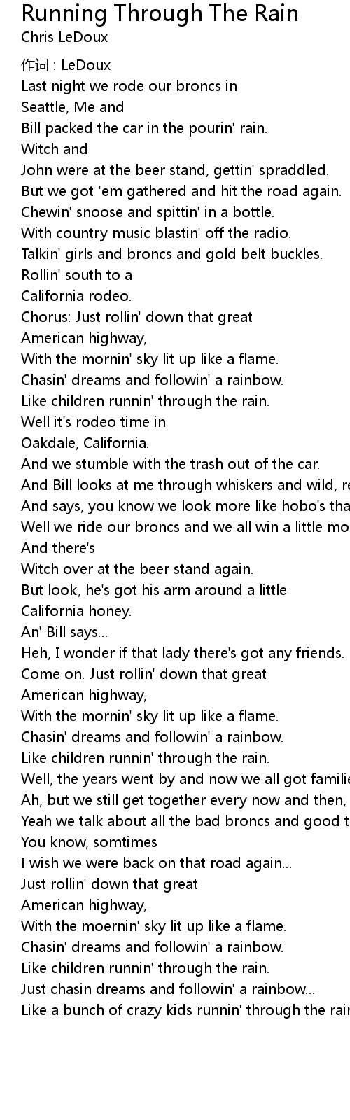 | Like children runnin' through the rain. | |