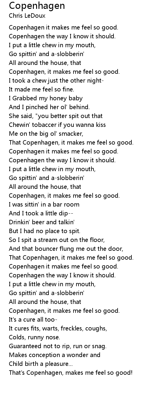 Copenhagen it makes me feel so good. |